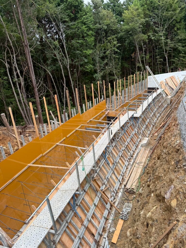 9月のブログでは、先月に引き続き擁壁工事の現場の様子をお伝えします。今回のテーマは「型枠」。新人らしく丁寧に分かりやすく、工程順にどんな作業をしているのかをご紹介していきたいと思います。