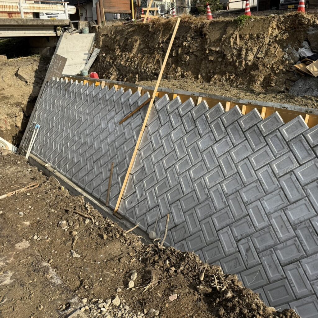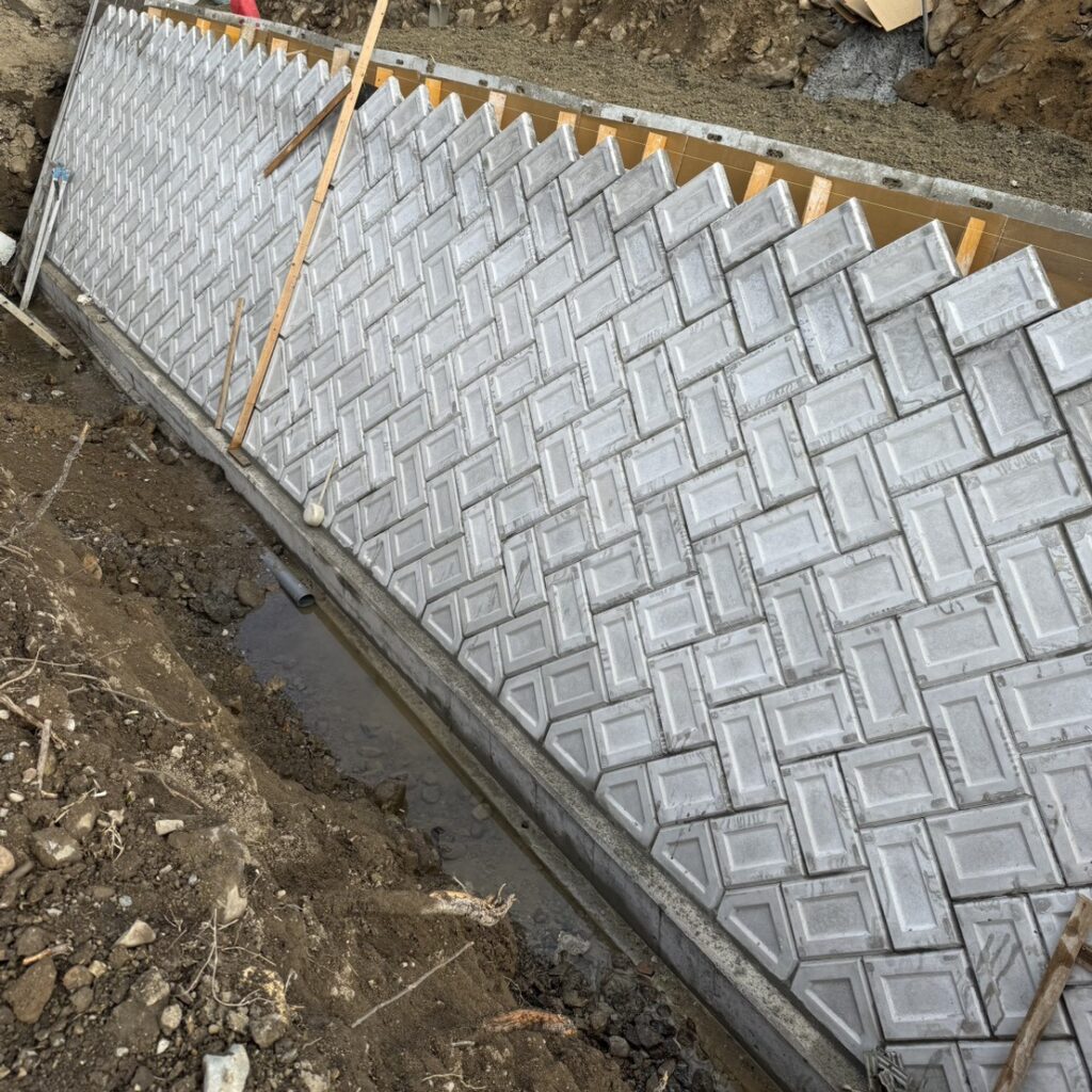 コンクリート擁壁(化粧型枠擁壁)工事です。