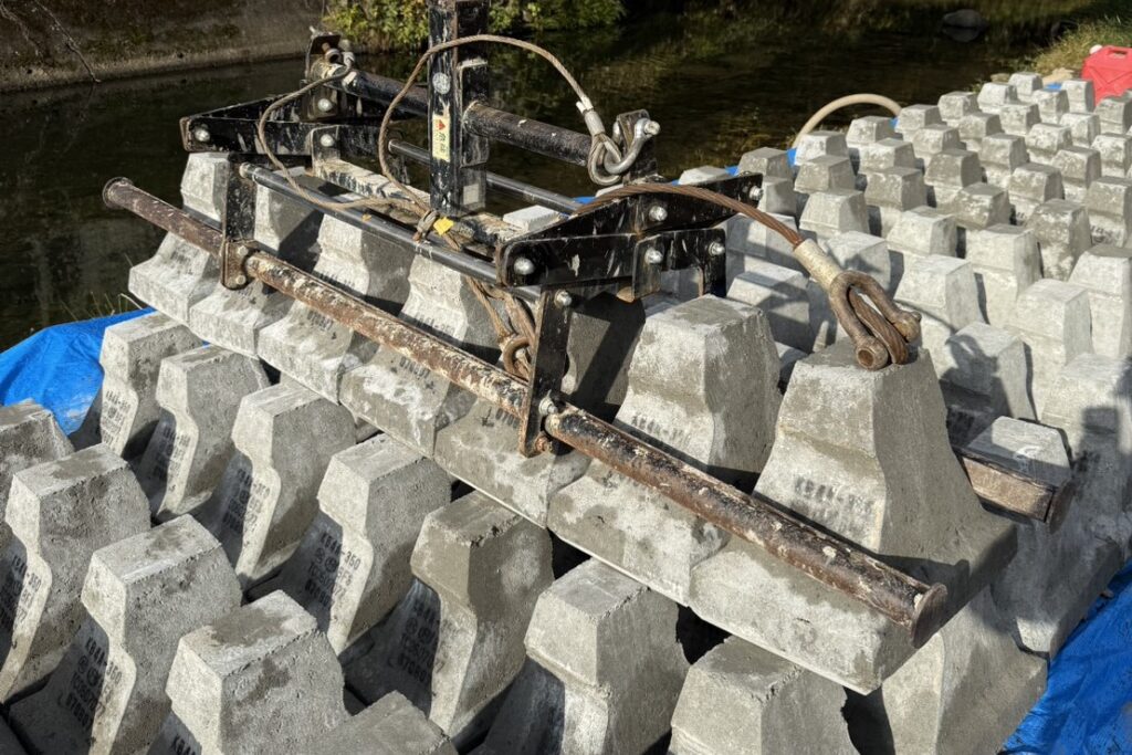 ブロックの搬送には、間知ブロック用クランプという器具を使います。