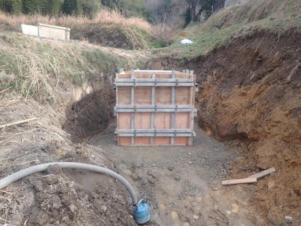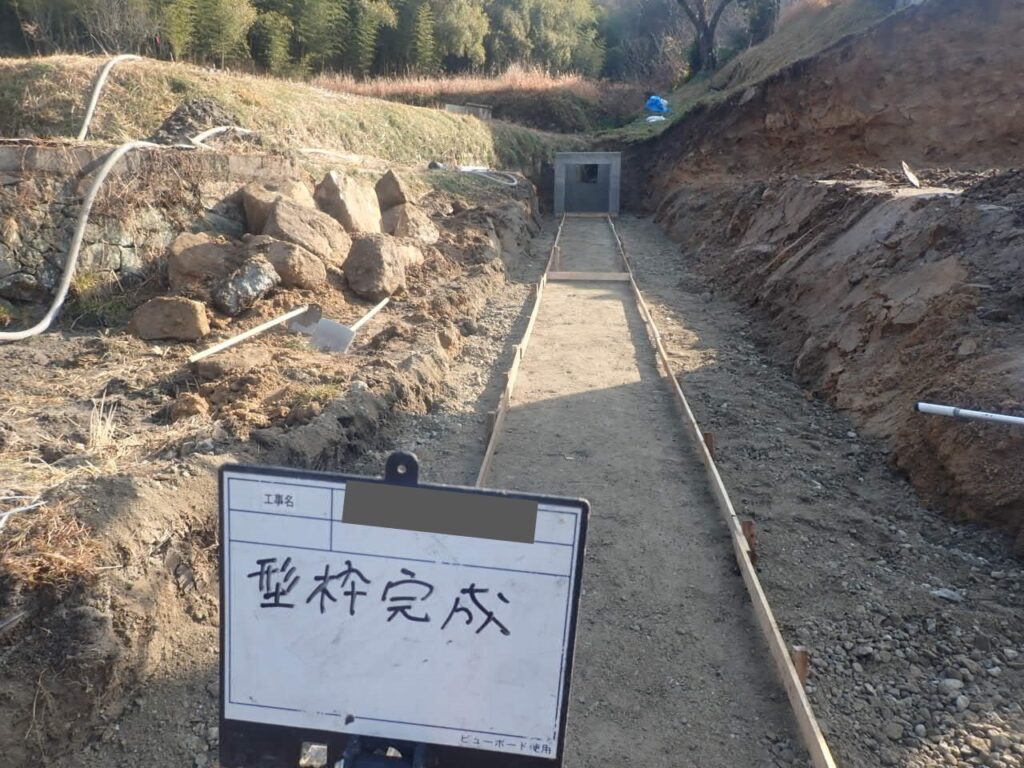 集水桝と同じように、ここでも図面通りに丁張・掘削・型枠・打設を行い、準備を整えます。