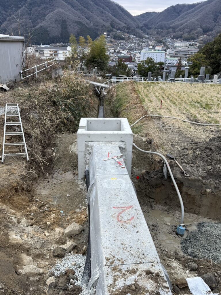 完成すると見えなくなりますが、この暗渠があることで、地盤や構造物が長く守られていると感じました。